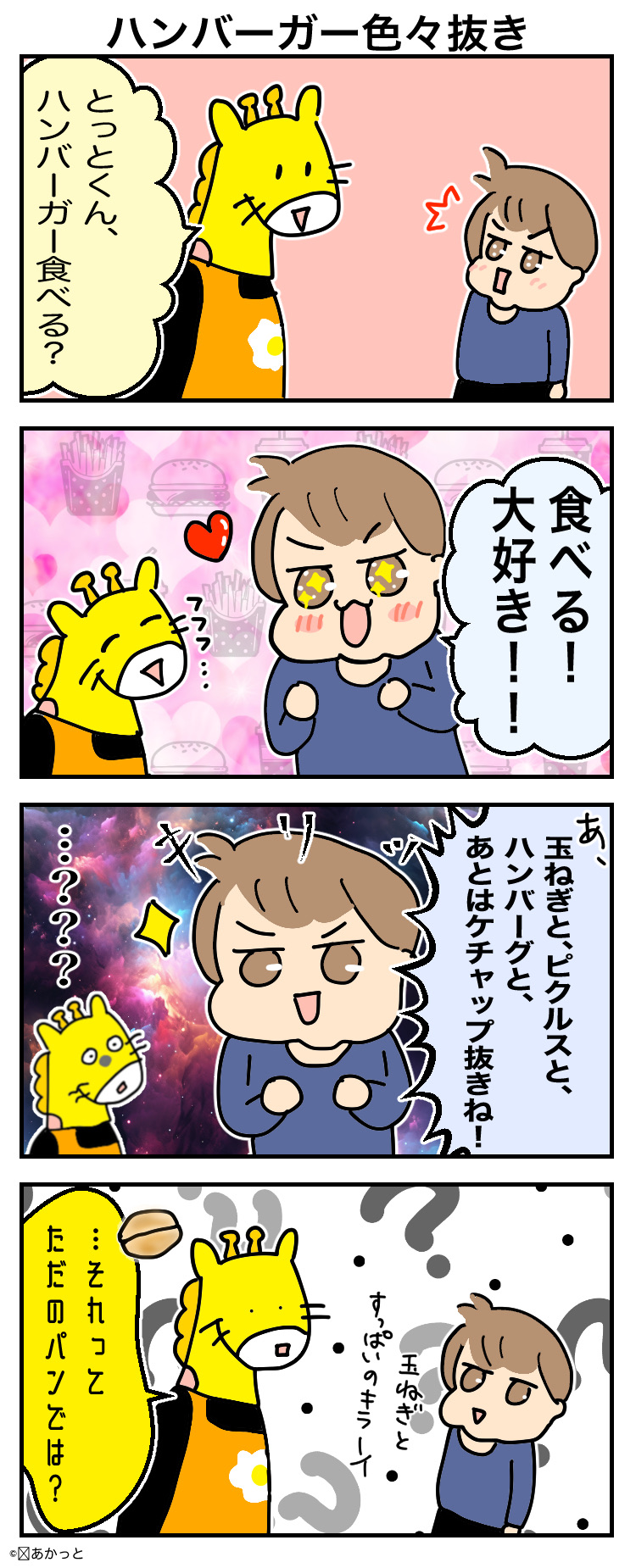 そのような時にとっとくんはハンバーガーが食べたいと言いました。